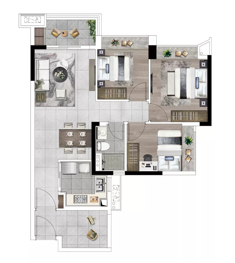 首先,让房叔惊叹的是珠江·花屿花城的极致户型。就拿77㎡户型来说,纵观全广州,面积80㎡大多只能做三房,能做出4房的项目绝对是凤毛麟角,总价138万起就能轻松上车。