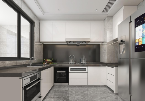 从入户门开始处处体现智能化、人性化,如四合一智能门锁、高清可视对讲、情景控制和智能交互触摸屏、一体化品牌橱柜、厨余垃圾处理器、厨房大牌三件套、净水器智能马桶……满足期待更超越期待,为业主实现理想居家生活。